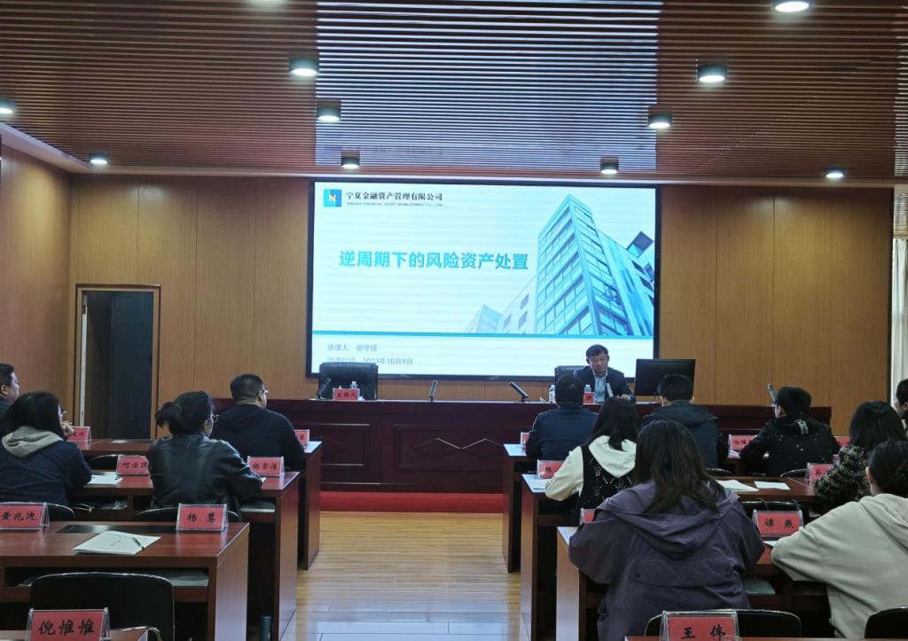 2023年10月9日,寧夏回族自治區(qū)地方金融監(jiān)管局在寧夏財(cái)政干部教育中心舉辦“全區(qū)金融監(jiān)管與業(yè)務(wù)能力提升專題培訓(xùn)班”。自治區(qū)各市縣金融局及區(qū)內(nèi)“7+4”類金融機(jī)構(gòu)的60余名代表參會(huì)。培訓(xùn)主要傳達(dá)學(xué)習(xí)習(xí)近平新時(shí)代中國特色社會(huì)主義思想及寧夏十三屆四次全會(huì)精神,針對(duì)地方金融監(jiān)管工作的熱點(diǎn)、難點(diǎn)問題,幫助地方金融監(jiān)管干部和地方金融機(jī)構(gòu)熟悉各項(xiàng)業(yè)務(wù)工作的新動(dòng)態(tài)、新要求。公司黨委副書記、總經(jīng)理姜守強(qiáng)代表寧夏金融資產(chǎn)參加授課,以社會(huì)發(fā)展為中心,結(jié)合自身經(jīng)歷與時(shí)政熱點(diǎn),圍繞地方AMC發(fā)展作出“逆周期環(huán)境風(fēng)險(xiǎn)資產(chǎn)處置”主題發(fā)言。