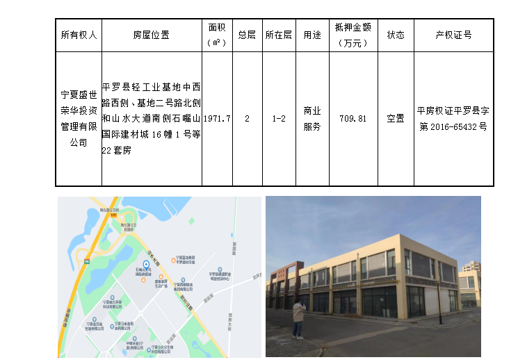 石嘴山國際建材城臨近京藏高速樞紐,交通便利,停車便捷。抵押物為聯(lián)排營業(yè)房,門前空間大,可用于商品銷售、倉儲(chǔ)堆料等。