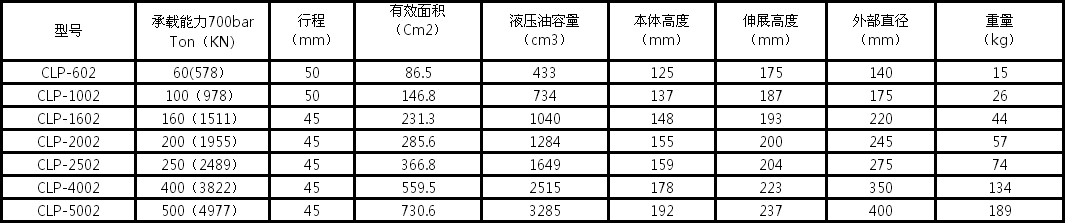 ☆用于需要長時間支撐重物的場合,除去油壓時仍可支持重物負載