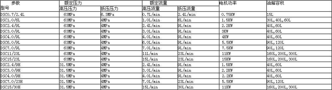 | DSC系列電動油泵 詳細參數(shù) |