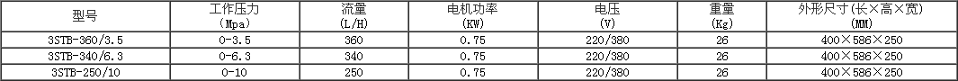 電動試壓泵3STB系列電動試壓泵(以下簡稱試壓泵),適用于水或液壓油介質(zhì),對各種壓力容器、管道、閥門等進行壓力試驗,亦用于作液壓能源,提供所需的壓力,適合于化工、建筑、水暖、石油煤炭、冶煉造船等行業(yè)。